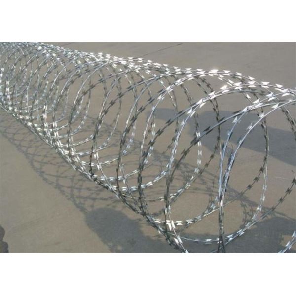 Razor Barbed Wire is also named concertina coils or razor type barbed wire. It is a kind of modern security fencing materials with better protection and fencing strength made of hot-dipped galvanized steel sheets or stainless steel sheets. Razor barbed wire is widely used in apartment house, organization units, prisons, frontier fence, military fields and other sites requiring severe fencing and security.